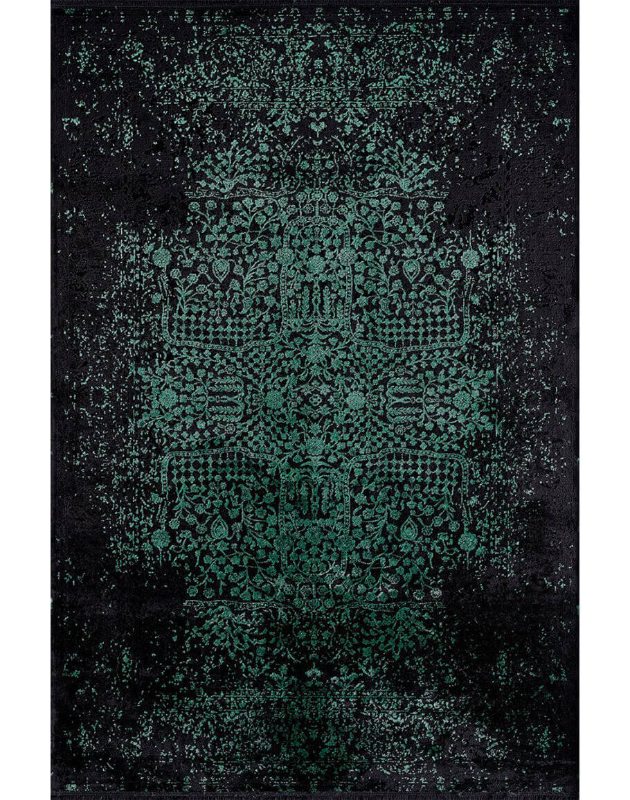 Artemis Halı Corfu 6352E Siyah Yeşil modeli Viskon ve Akrilik İplikle dokunmuş olup 10mm Hav yüksekliğine sahiptir.
