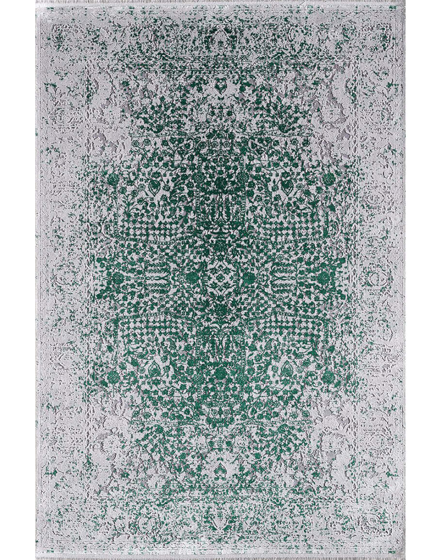 Artemis Halı Corfu 6352F Gri Yeşil modeli Viskon ve Akrilik İplikle dokunmuş olup 10mm Hav yüksekliğine sahiptir.